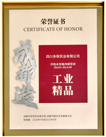 喜讯:多联实业第三次荣获“成都工业精品”称号